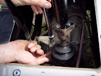 Nous ne sommes pas trop de 2 pour tirer sur les écrous de maintien des silent-blocs ... 16 ans d' exposition aux intempéries ça "soude" !